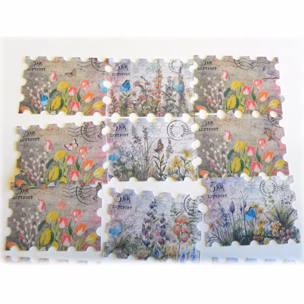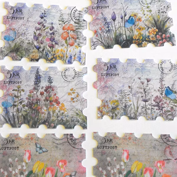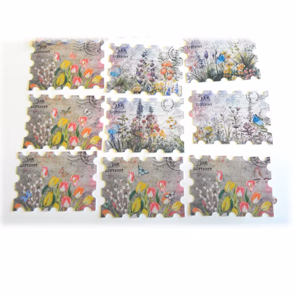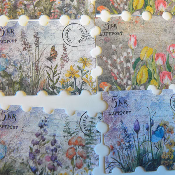 Ser ut som frimärke men dessa är inte äkta frimärke utan det är s.k faux fimärke avsett för pyssel.