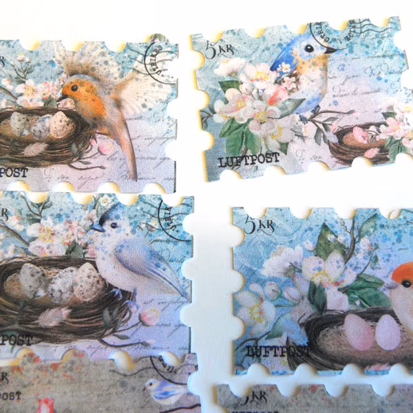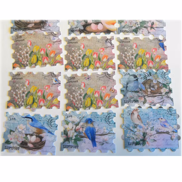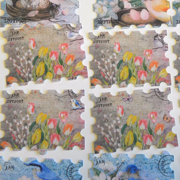 Ser ut som frimärke men dessa är inte äkta frimärke utan det är s.k faux fimärke avsett för pyssel.